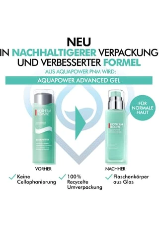 Aus Aquapower PNM Gel wird Aquapower Advanced Gel. Die Aquapower-Ikone jetzt in nachhaltigem Design und mit verbesserter Formel. Speziell entwickelt für beanspruchte Männerhaut versorgt das Aquapower Advanced Gel die Haut 48 Stunden mit Feuchtigkeit. Die frische, leichte Geltextur hinterlässt ein angenehmes Gefühl auf der Haut, zieht sofort ein und sorgt dank des Cooling-Effekts für ein erfrischtes Hautgefühl – auch nach der Rasur. Neben feuchtigkeitspendenden Wirkstoffen enthält die Männerpflege den regenerierenden Inhaltsstoff Life Plankton™ sowie die Vitamine E, C und B5 und Oligo-Mineralien. Die Haut wird revitalisiert, gestärkt und den ganzen Tag mit Feuchtigkeit versorgt.