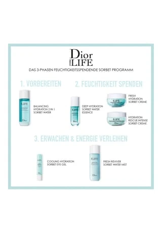 Die mit Malven- und Haberleablätterextrakt getränkte Essenz entfaltet beim Auftragen 3 Wirkungen: Sie spendet Feuchtigkeit wie ein Serum, Glanz wie ein sanftes Peeling und stärkt wie eine Lotion. Die flüssige, transparent-blaue Textur sorgt für einen Frische-Kick, der die Haut sofort belebt. Die tiefgehend mit Feuchtigkeit versorgte Haut ist glatt und rein. Sie wird mit jedem Tag stärker, gesünder und so schön, dass Sie sie am liebsten ungeschminkt zeigen wollen. Während der Anwendung – Die Haut ist tiefgehend mit Feuchtigkeit versorgt 82 % – Die Haut wirkt frischer 93 % Anwendungstest, 60 Frauen – Strahlender Teint +30 % Selbstevaluierung, 30 Frauen. Nach 1 Monat – Die Haut ist tiefgehend mit Feuchtigkeit versorgt 87 % – Die Haut wirkt frischer 93 % Anwendungstest, 60 Frauen – Strahlender Teint +44 % Selbstevaluierung, 30 Frauen – Die MALVE stimuliert die Synthese von Aquaporinen in der Tiefe, wodurch die Wasserzirkulation verbessert wird. – Mit dem Extrakt aus den Blättern der HABERLEA hat die Dior Forschung erstmals einen Wirkstoff entdeckt, der nicht nur sanft zur empfindlichen Hautflora ist, sondern sie vor allem zur Produktion von Stoffen anregt, die sie schön machen. – Die natürlichen Fruchtsäuren sorgen für ein sehr sanftes Peeling, das die Haut tagtäglich wunderbar weich macht