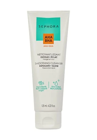 Ein unparfümiertes Reinigungsgel mit Salicylsäure und AHAs zur Exfoliation der Haut, der erste Schritt in einer Gesichtsroutine für eine glattere, strahlende und sichtbar schönere Haut. Ein peelender und glättender Reiniger für Gesicht und Hals. Mit 98 % natürlichen Inhaltsstoffen ist der Sephora Collection Smoothing Face and Neck Cleanser der tägliche Begleiter für gereinigte Haut. Seine Gel-Textur, die abzuspülen ist, exfoliert die Haut, um schon bei der ersten Anwendung mehr Ausstrahlung zu bringen. Das Erscheinungsbild der Poren wird reduziert, für eine glattere Haut. Befreit von Unreinheiten, zeigt sich die Haut schöner, klarer und strahlender. Salicylsäure (BHA) + AHA: ein Reinigungsgel für das Gesicht mit Peeling-Wirkung. Das Sephora Collection Peeling-Reinigungsgel für Gesicht und Hals reinigt die Haut dank seiner Kombination aus AHA + Salicylsäure (die bekannteste BHA). Salicylsäure, kombiniert mit AHAs, hilft, die Haut zu exfolieren, für einen sofort gleichmäßigeren Hautton und eine verbesserte Hautqualität. Ein Peeling-Reinigungsgel für Gesicht und Hals mit 98 % natürlich gewonnenen Inhaltsstoffen und einer Verpackung, die mit einem verantwortungsvollen Ansatz entwickelt wurde. Das glättende Reinigungsgel von Sephora Collection enthält 98 % natürlich gewonnene Inhaltsstoffe: AHAs (Alpha-Hydroxy-Säuren) sind Säuren, die aus Früchten und Pflanzen gewonnen werden, Salicylsäure ist ein BHA (Alpha-Beta-Hydroxy-Säuren) aus dem Gaultheria-Baum. Aloe vera (auch natürlichen Ursprungs), bekannt für seine beruhigenden Eigenschaften. Die Verpackung besteht zu 10 % aus recyceltem Kunststoff und zu 44 % aus Kunststoff aus Zuckerrohrresten. Formeln, die zu mindestens 90 % aus natürlichen Inhaltsstoffen bestehen. GOOD FOR A BETTER PLANET. Ökologisch gestaltete Verpackung und/oder verantwortungsvolle Beschaffung von Inhaltsstoffen. Produkte ohne tierische Inhaltsstoffe.